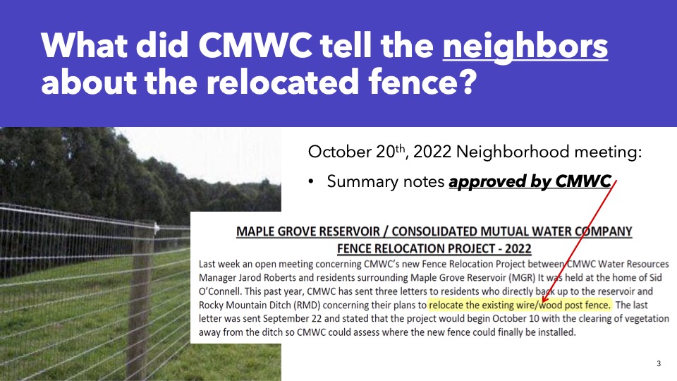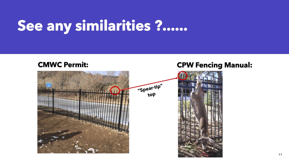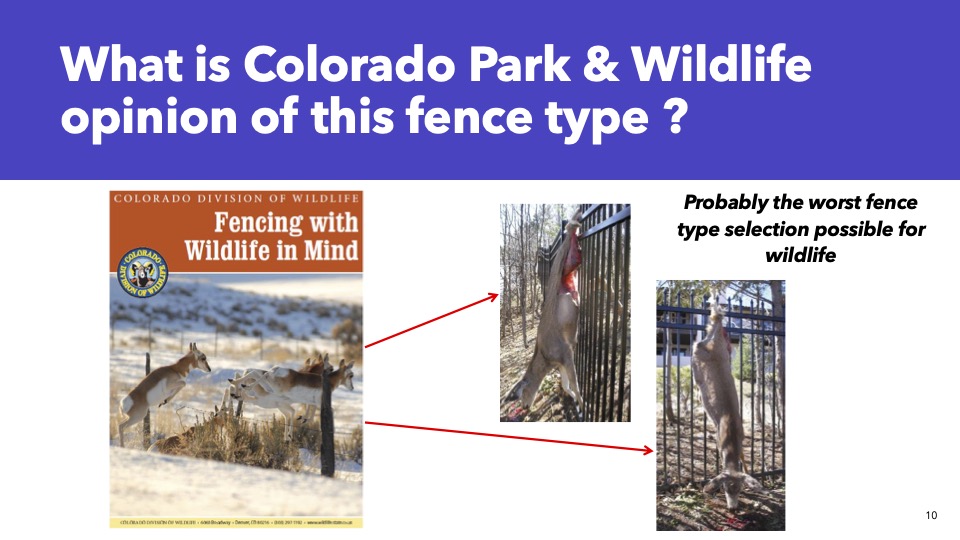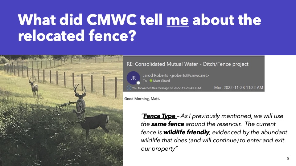 ***Please note that there is a graphic image in the slideshow from the Colorado Parks and Wildlife included in this to show the risks of the fencing style chosen by Consolidated Mutual Water Company.***