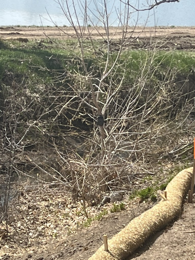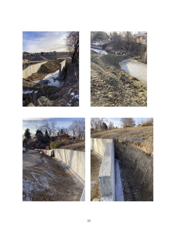 November 2022: Many 50+ year old trees were removed including many outside the outer ditch. The removed trees include those with nesting eagles and hawks. Ditch excavated on both sides. Concrete walls installation on NW side of ditch started. Instead of the 6’ promised concrete lining, new concrete poured up to 8’ in spots with earth built up to make it larger.