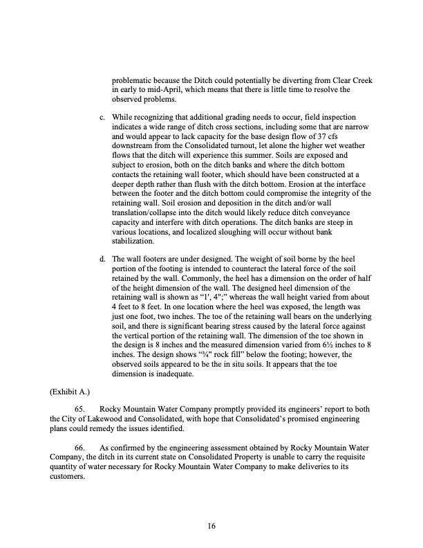 - CMWC crosses over public right of way and deposited approximately 100-150 cubic yards (10 large truck loads) of unspecified soil, apparently commingled with asphalt, into the Rocky Mountain Ditch water corridor and onto the City of Lakewood property near the 23rd Ave. and Ward Rd.